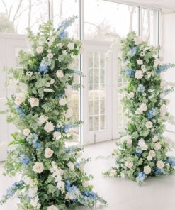 This floral rental setup is especially popular for church ceremonies, christenings, baptisms, and sophisticated garden-themed weddings. The serene blue and white palette symbolizes purity and new beginnings, making it an ideal choice for special milestones and family celebrations. Whether you’re planning a classic, modern, or whimsical design, these flower columns deliver that unforgettable “wow” moment your guests will love.