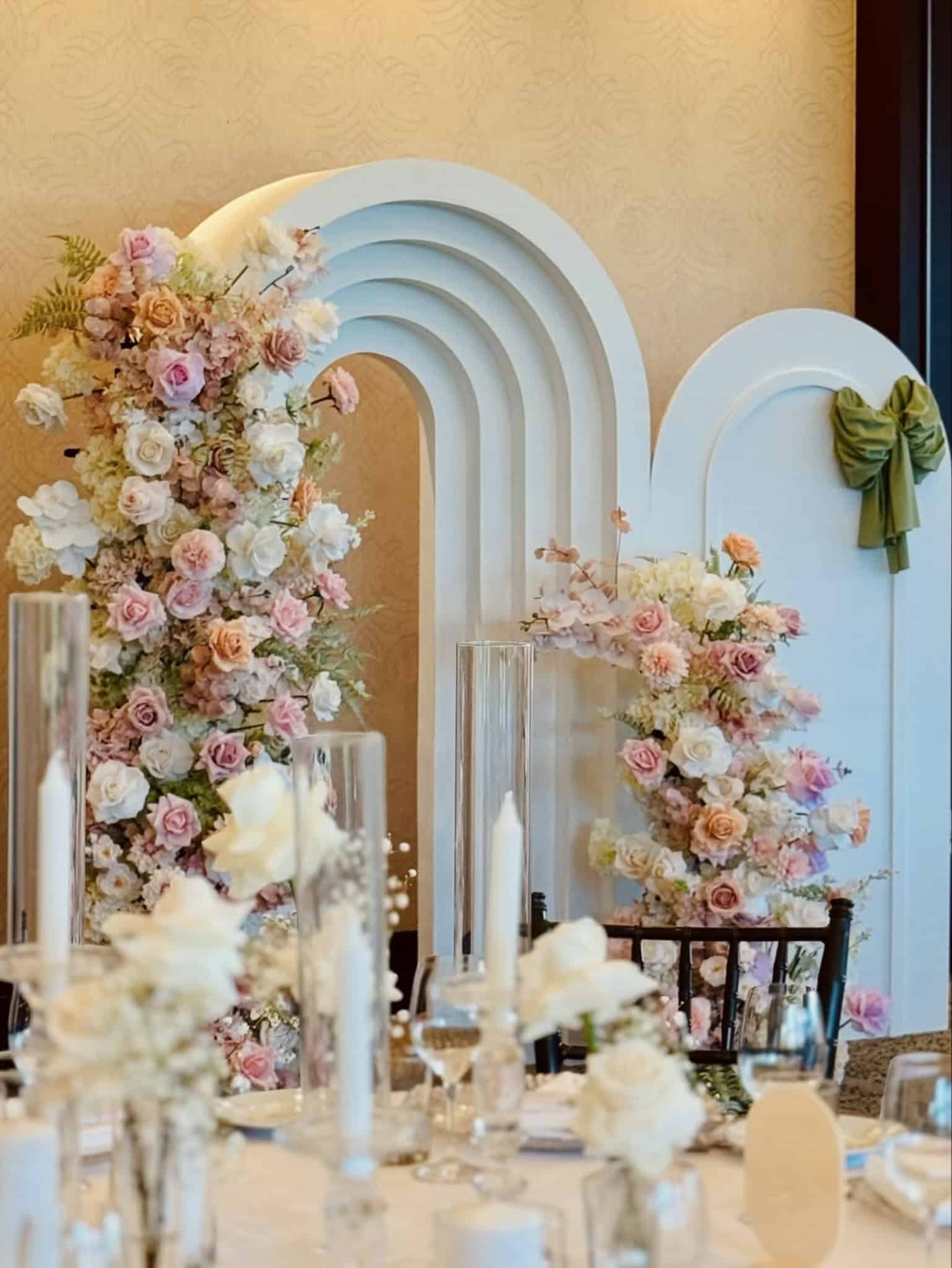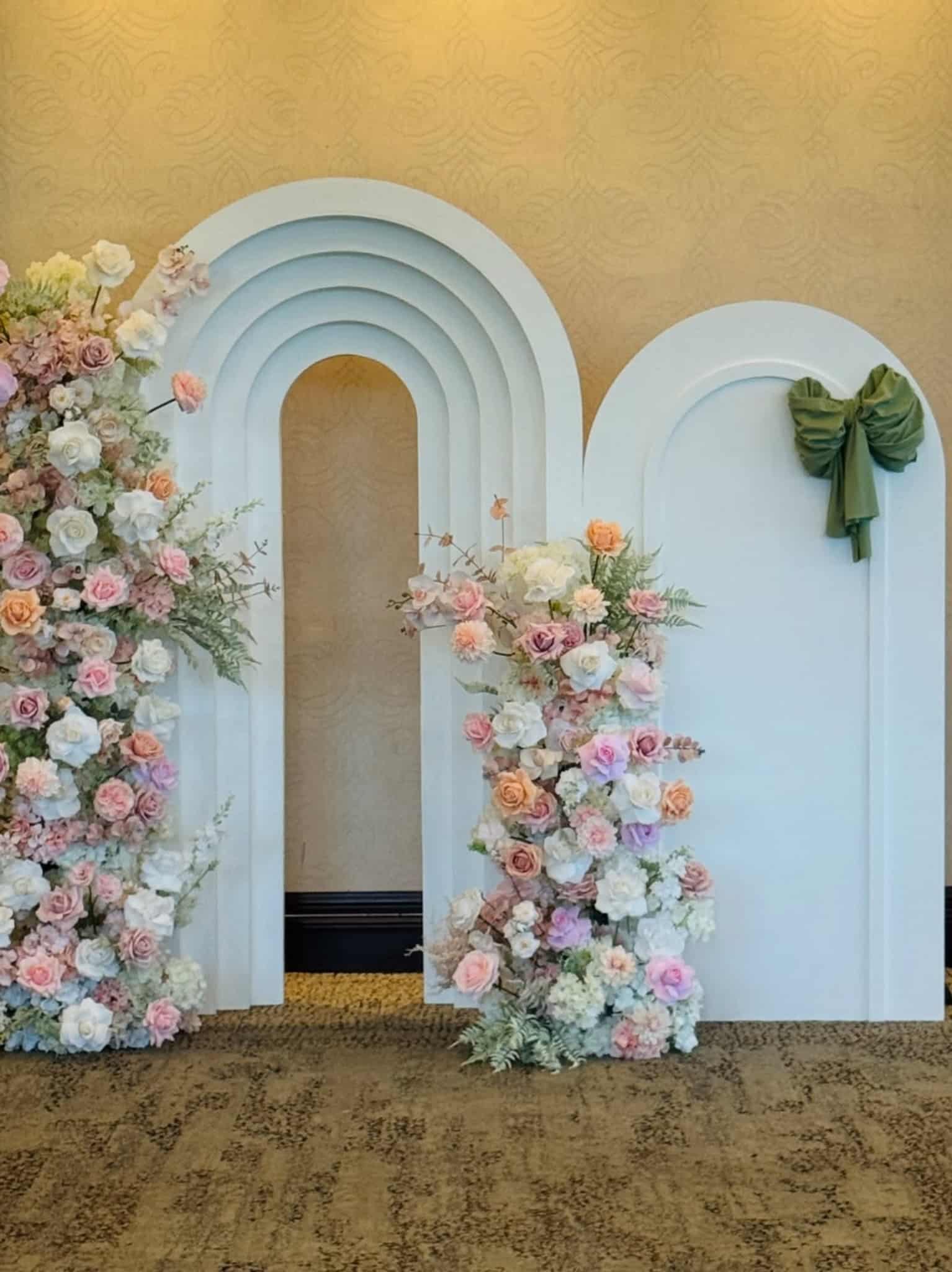 Create a soft, romantic focal point for your celebration with our Blush & Bloom Arch Package a luxury setup designed for weddings, bridal showers, baby showers, baptisms, engagements, and elegant milestone events. This statement arrangement features modern white arch panels paired with lush, garden-style floral styling in dreamy pastel tones. With layered arches, a clean sculptural look, and abundant blooms, this package is perfect for clients who want a timeless, high-end backdrop that photographs beautifully from every angle.