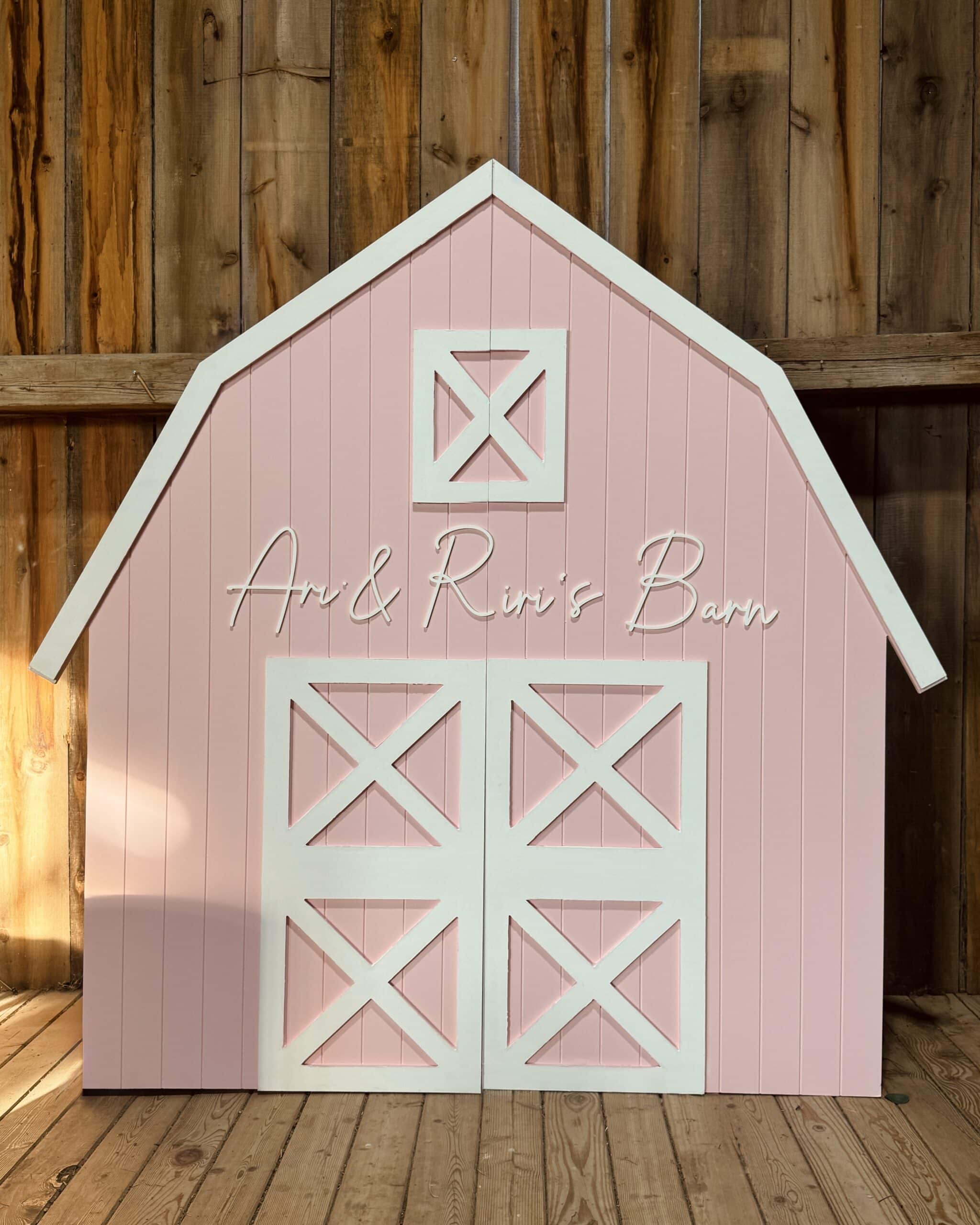 Pink Barn Backdrop & Custom Sign – Perfect for Farm & Rustic Themed Celebrations
